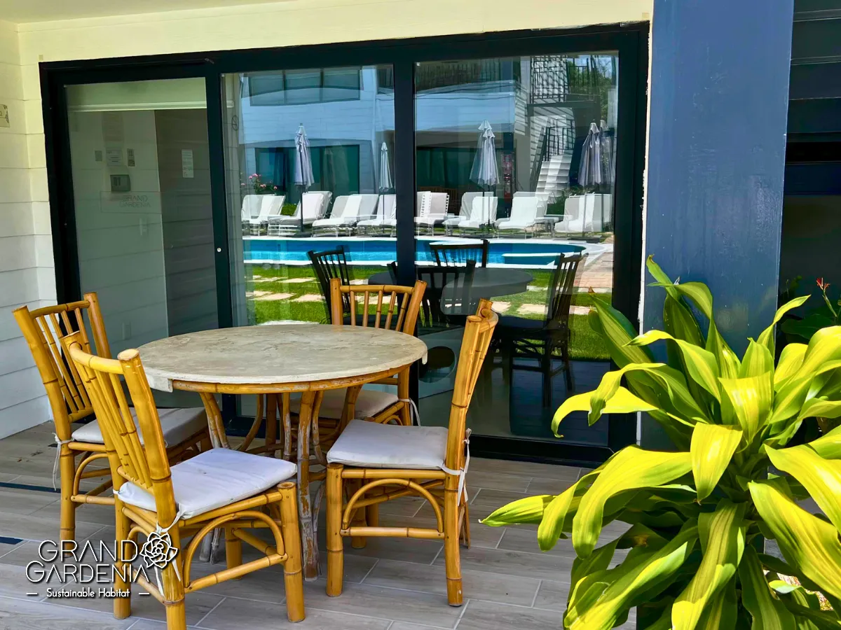 Villa acogedora de 45 m', ideal para hasta 3 personas. Cuenta con una habitación con cama queen size, un sofá cama en la zona de estar, baño privado y un balcón o terraza para disfrutar del entorno.