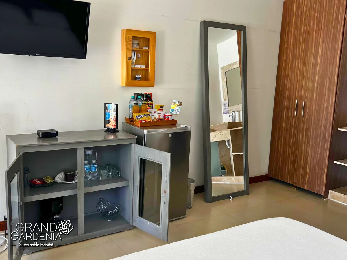 Incluye Wi-Fi, TV satelital y minibar, ofreciendo todo lo necesario para una estancia